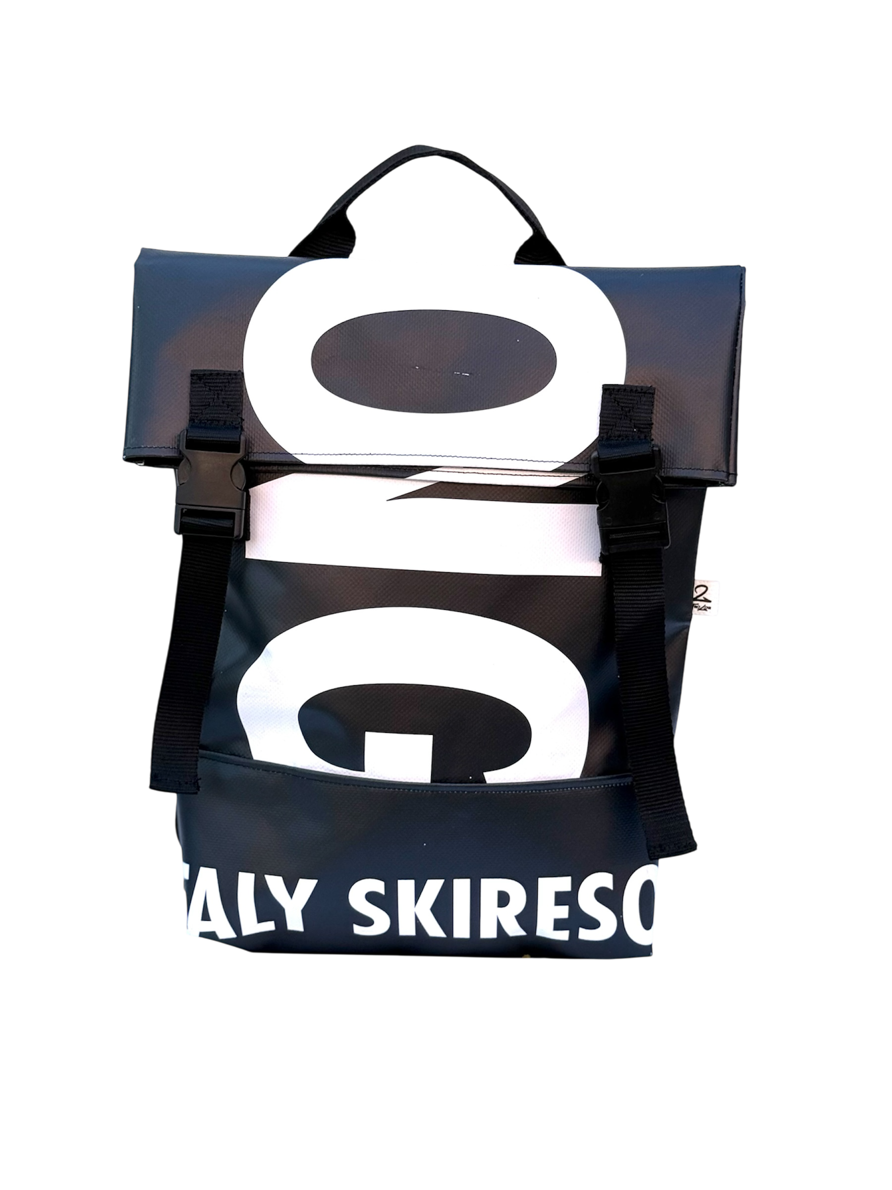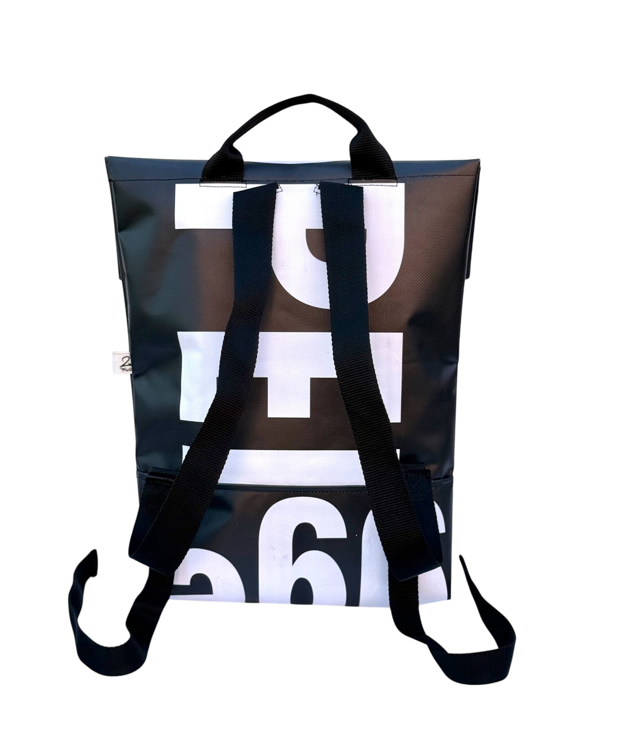 Kompakter Rucksack aus recyceltem PVC-Plane.